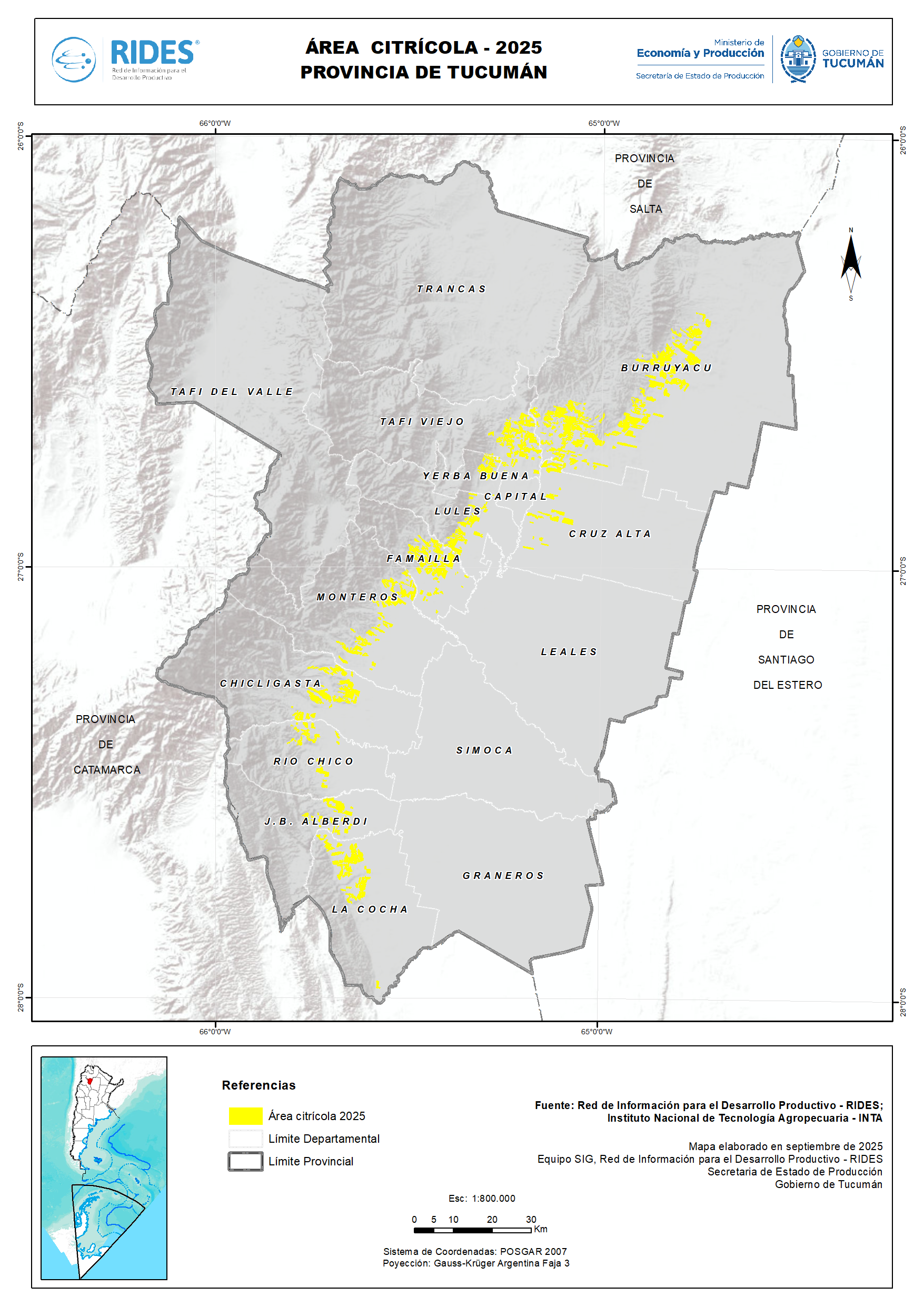 | Área Citrícola 2025-Prov. de Tucumán | | | |