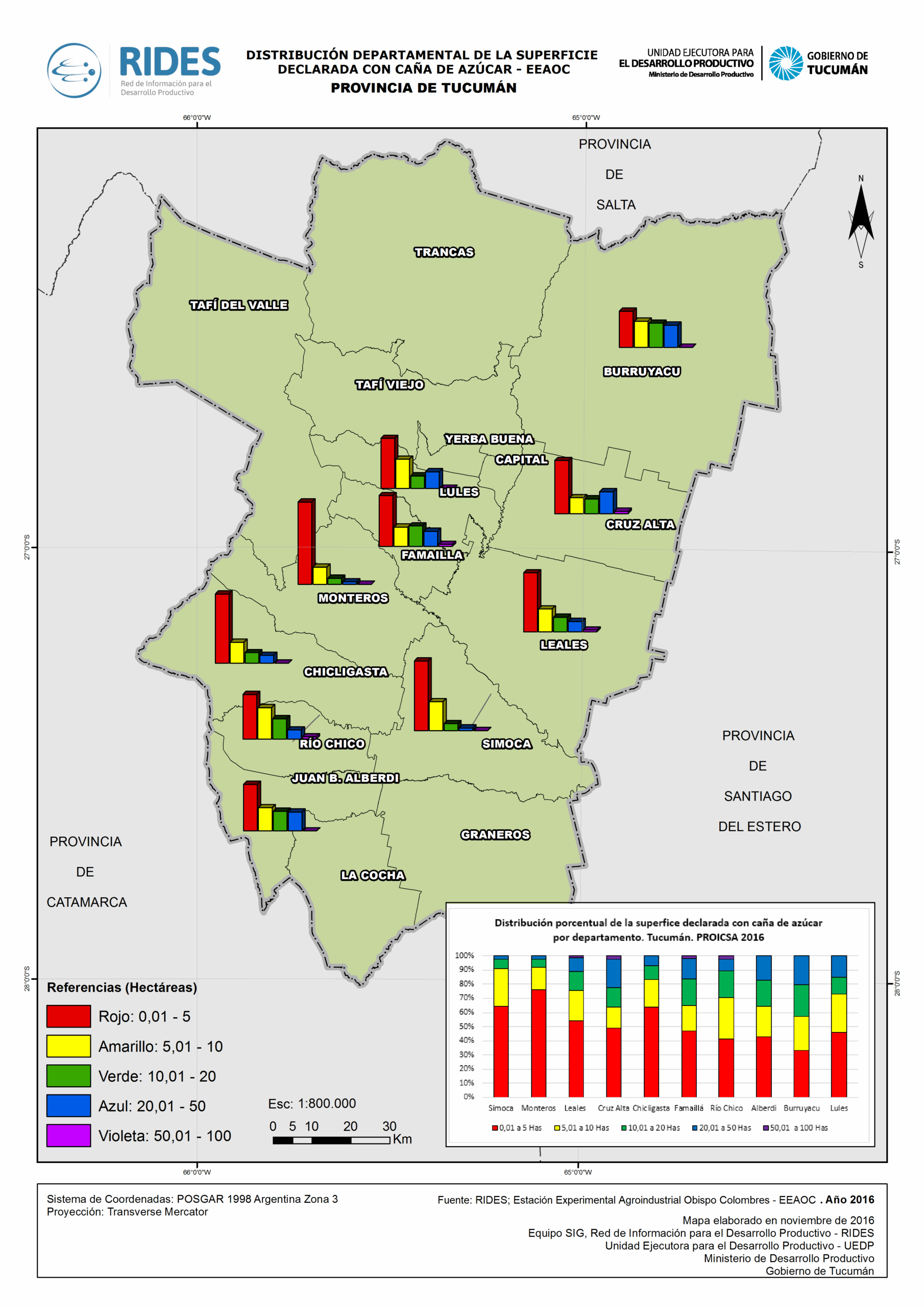 | Distribución Departamental de Superficie declarada con caña de azúcar-Prov. de Tucumán | | | |